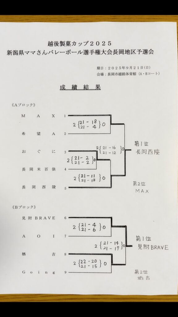 9月21日(日)に越路体育館にて、「越後製菓カップ2025 新潟県ママさんバレーボール選手権大会 長岡地区予選会」が開催されました。長岡地区のママさんバレーボーラーたちが一堂に会し、日頃の練習の成果を発揮するべく、熱のこもったプレーを繰り広げました。